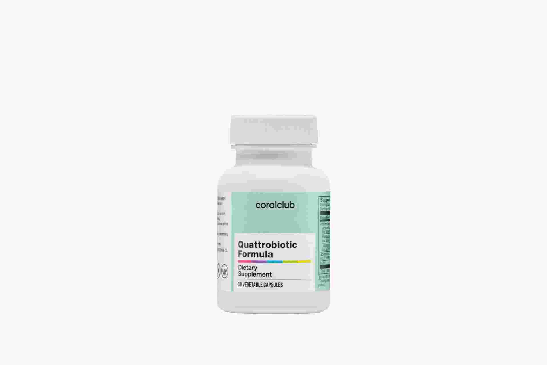 Quattrobiotic Formula – to je inovativní komplex pro podporu střev, který obsahuje 12 miliard CFU probiotik v každé kapsli. Unikátní technologie čtyřvrstvé ochrany probiotik před negativními vnějšími vlivy a vnitřním prostředím organismu zajišťuje jejich přesné dodání do střeva a zachování jejich vyhlášené aktivity.